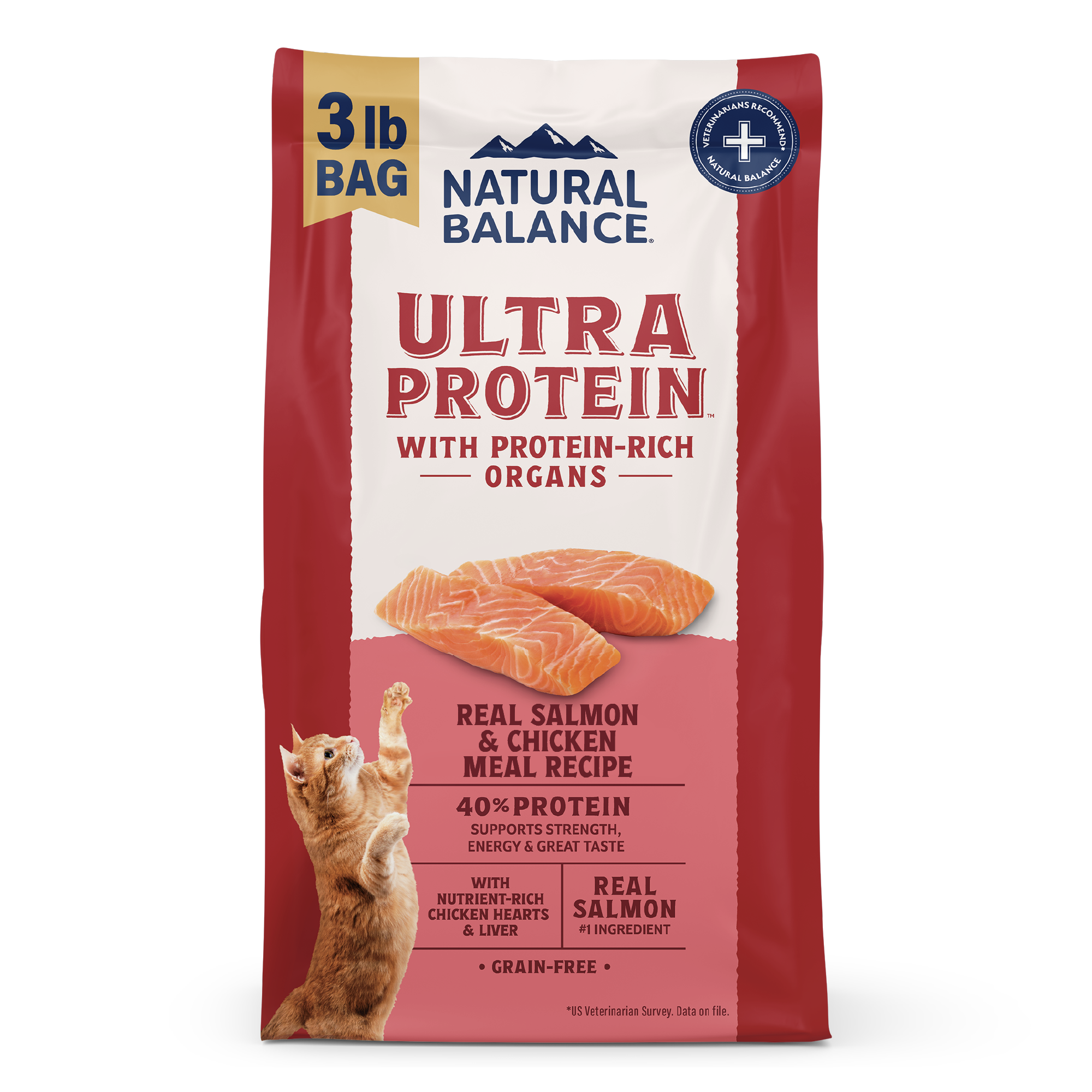 Natural Balance 頂級系列的真三文魚與雞肉配方,由我們的獸醫與營養專家專為貓咪量身打造,旨在最大化蛋白質、風味與營養,即使是最挑嘴的貓咪也無法抗拒。這款美味三文魚與雞肉貓糧的每一口都含有富含蛋白質的貓咪喜愛的器官食材,如雞肝與雞心,營養全面均衡,能提供貓咪渴望的能量與絕佳風味。