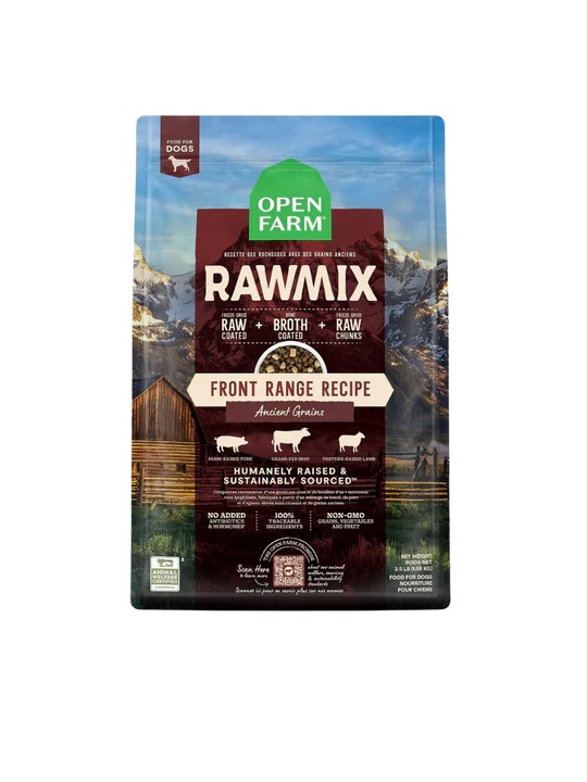 * Open Farm RawMix Front Range 配方狗糧的配方符合 AAFCO 狗糧營養成分錶中規定的所有生命階段的營養水平,大型犬(成年犬70 磅或以上)除外 *
