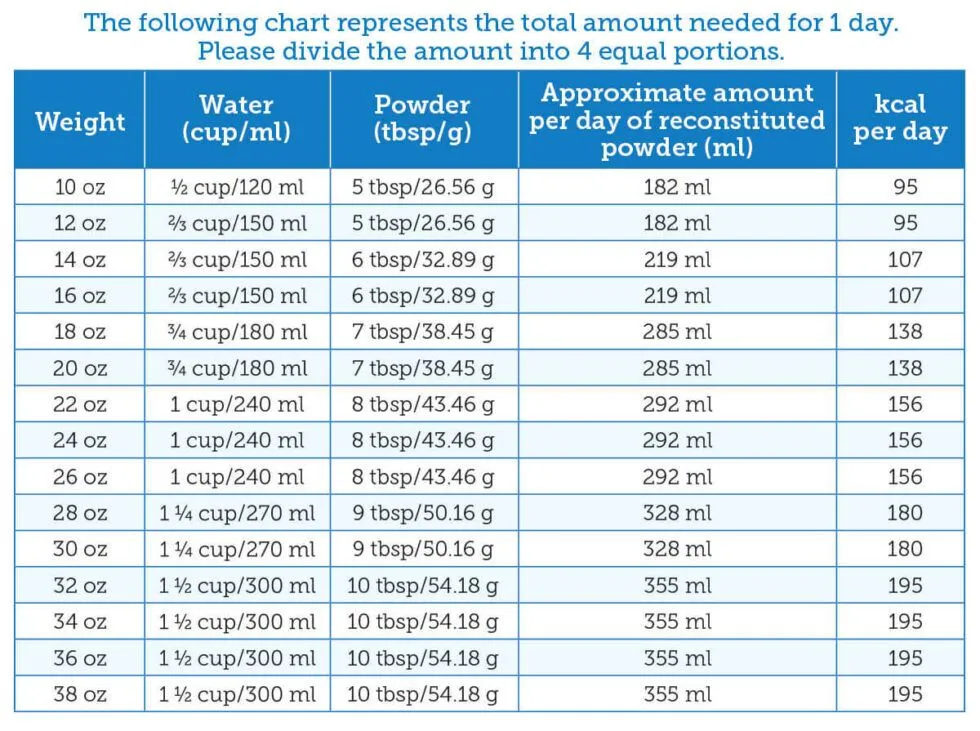 *請勿沖調超過24小時內可飲用量的KMR第二階段粉劑。