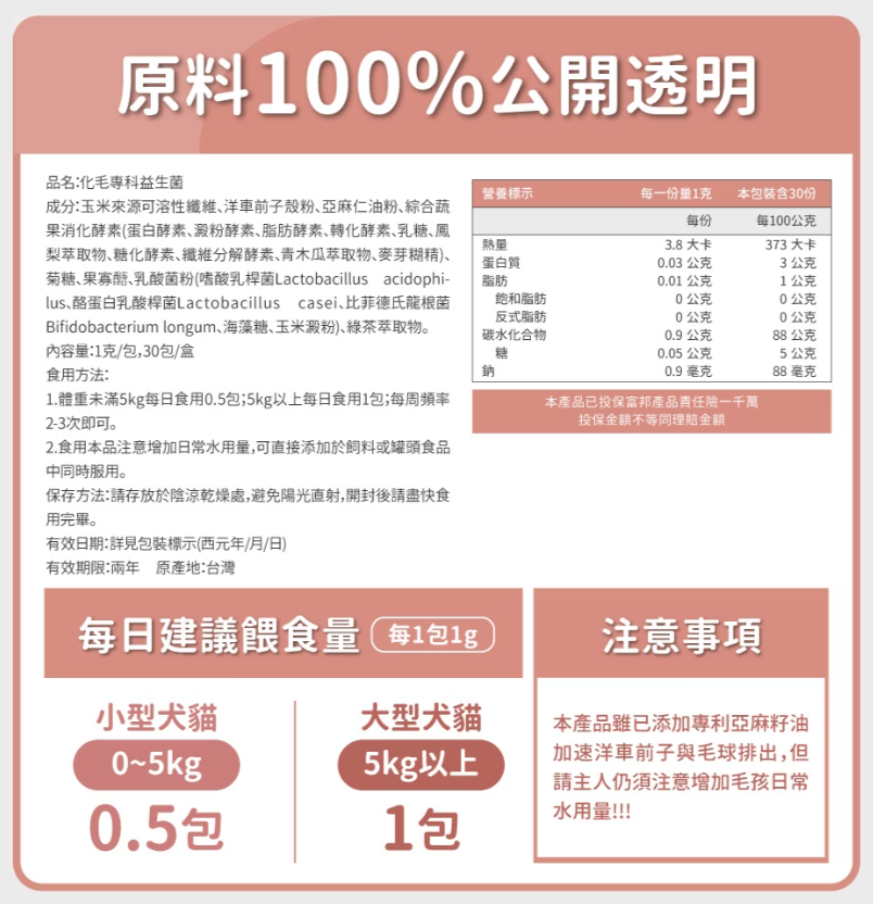 | ✅ 含天然油脂加速毛髮排出 | 如亞麻籽油,減少毛髮在腸道停留時間,降低便秘機率 |