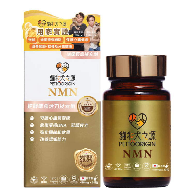 貓和犬之源NMN純度達99.8%,是NAD+的直接前體物質,合成為NAD+,在細胞能量生成中扮演重要角色。毛孩子和我們人類一樣,伴隨著成長,身體會不斷流逝NAD+能量﹔它們的生理機能衰退速度也比人類更快,從而會出現一系列健康免疫力問題。盡早為愛寵補充β–NMN抗衰活力成分,能有效激活長壽基因,延緩衰老過程。