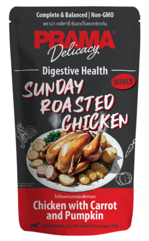 [$108/12件]Pramy 功能性狗濕糧包 假日肉汁烤雞 腸胃保健 120g (紅)