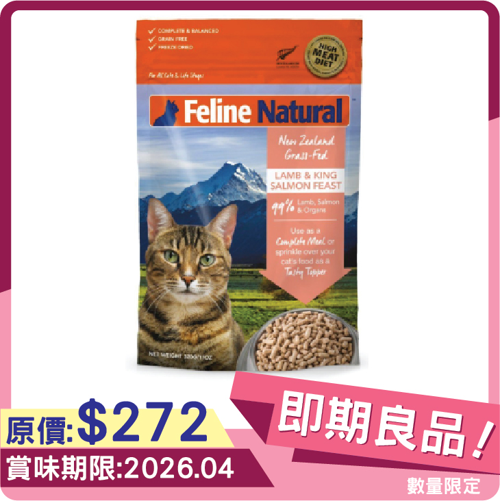 Feline Natural 冷凍脫水鮮肉貓糧 - 羊肉及帝王三文魚配方 320g