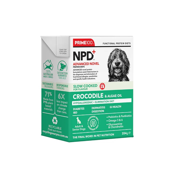 Prime100 SPD™ 慢煮鱷魚和海藻油是一款先進、新型、低致敏性的單一蛋白質飲食,專為需要先進新型蛋白質消除飲食或食物試驗的犬隻設計。非常適合疑似食物敏感、皮膚過敏或消化問題(包括發炎性腸道疾病)的犬隻。這是一款完整均衡的功能性飲食,富含菊苣根萃取物益生元,有益於胃腸道健康。