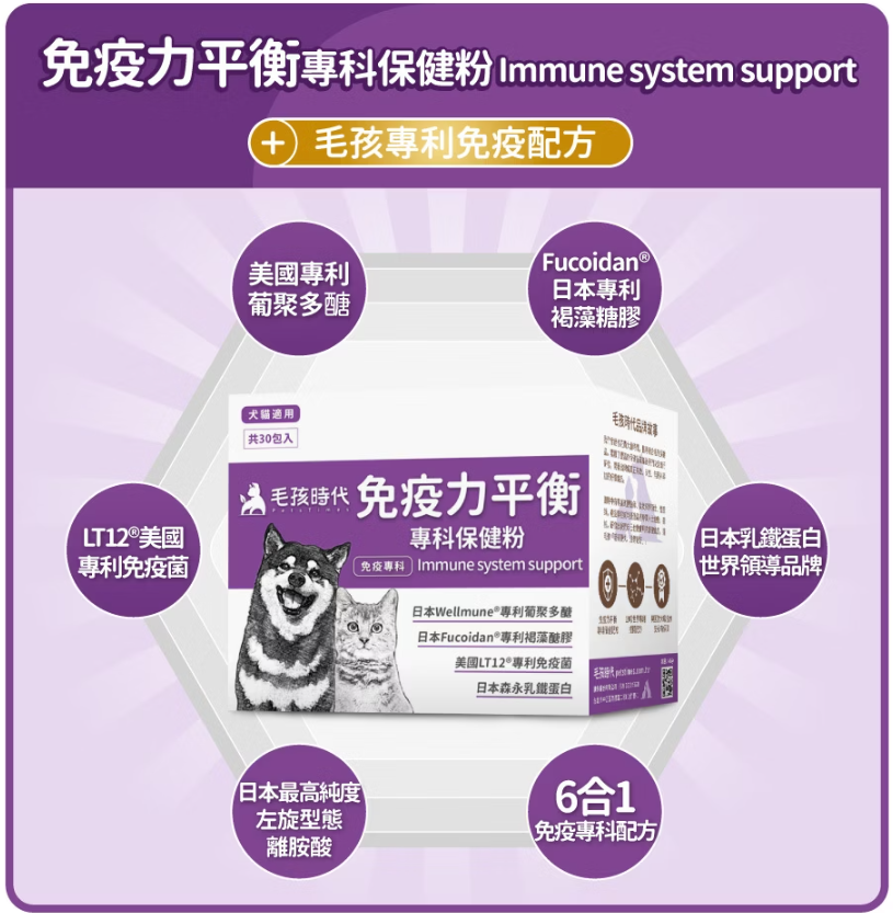 毛孩專利Ⓡ免疫配方+6合1免疫專科配方