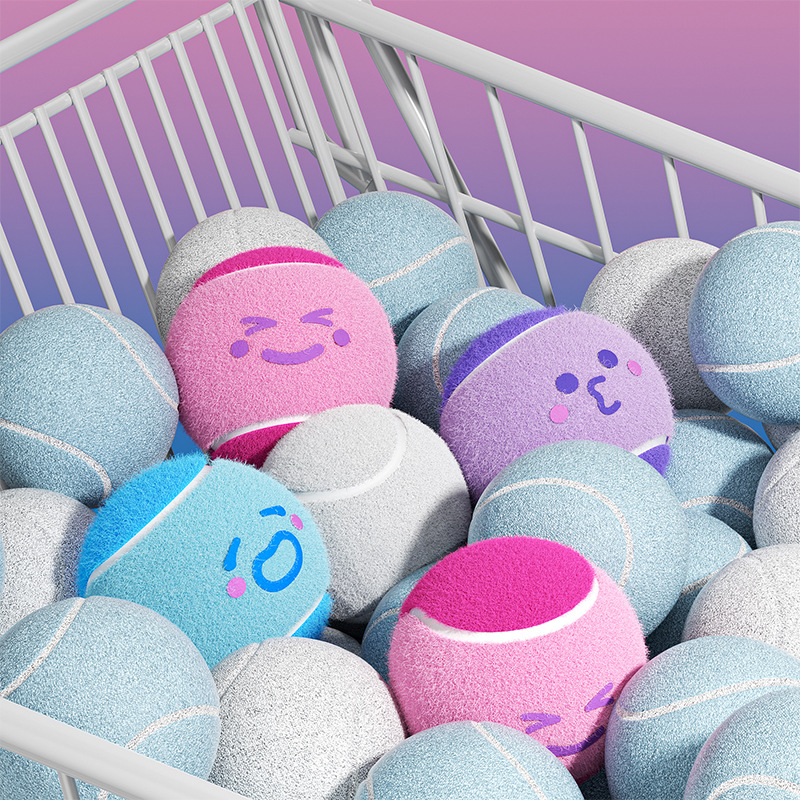 橡膠毛絨彈力玩具 表情網球 4.2cm