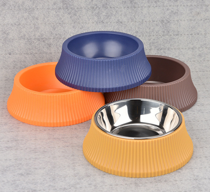 羅馬柱款 可分離不銹鋼寵物糧碗 藍色 18cm