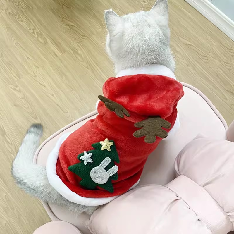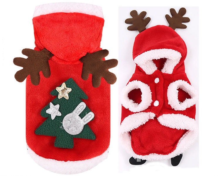 聖誕節變裝寵物衣 紅色有帽聖誕樹小鹿角 兩腳款
