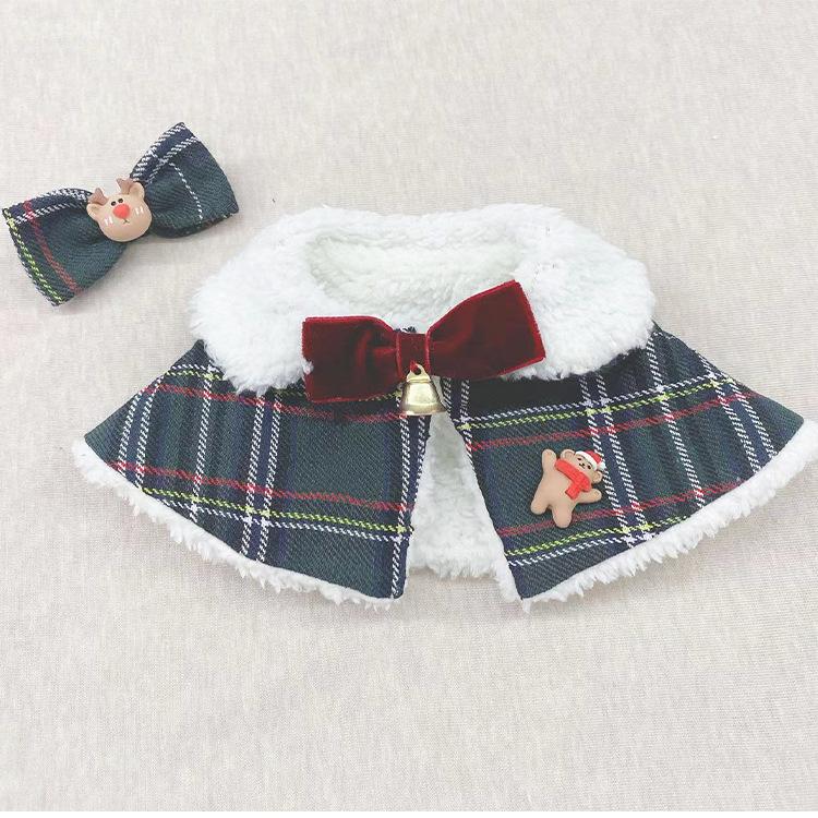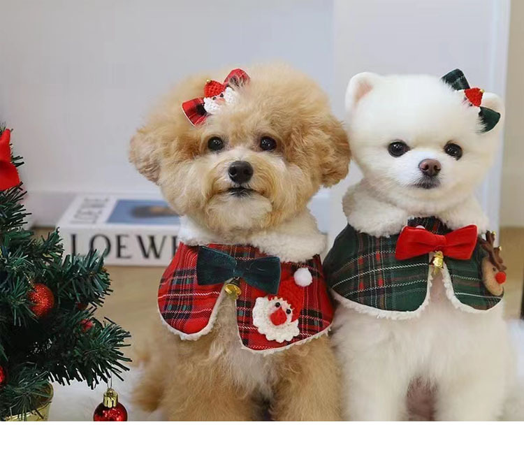 聖誕節變裝寵物斗篷披風 披肩+髮夾 綠格紋