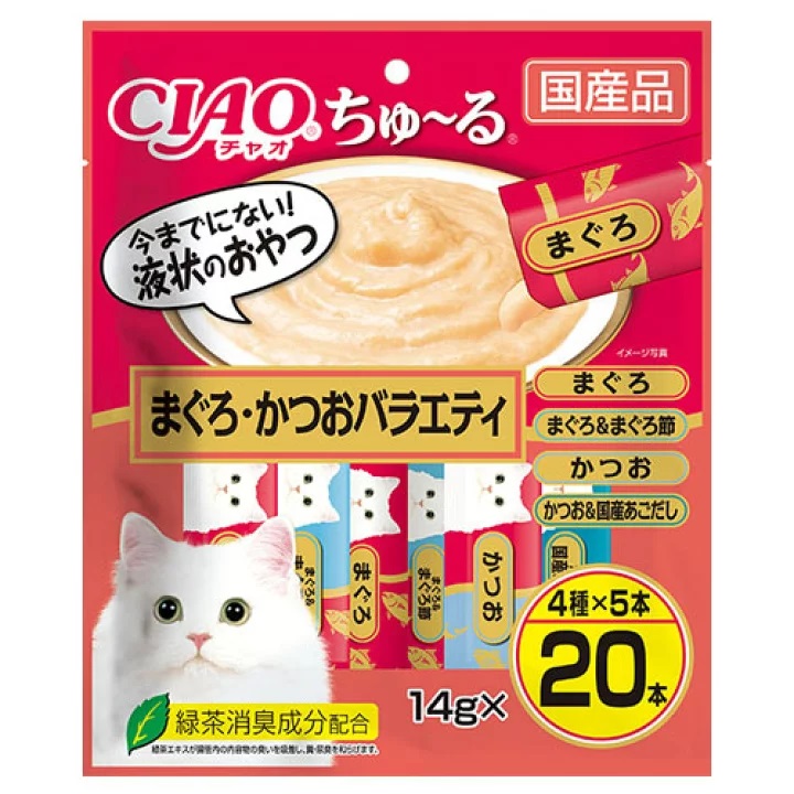 CIAO 貓小食 肉泥 鮪魚+柴魚 14g*20本 (桃紅橙) (SC-267)