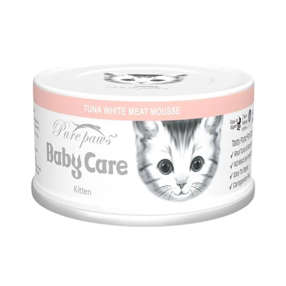 purepaws慕斯系列,採用人類級別食用原材料,選自太平洋的吞拿魚,不含副產品及其它化學物質。內含豐富水分,能有效解決便溺問題;富含脂肪酸、牛磺酸、蛋白質可以提升幼貓身體狀態,也適合給懷孕與哺乳期的母貓進行營養補充。