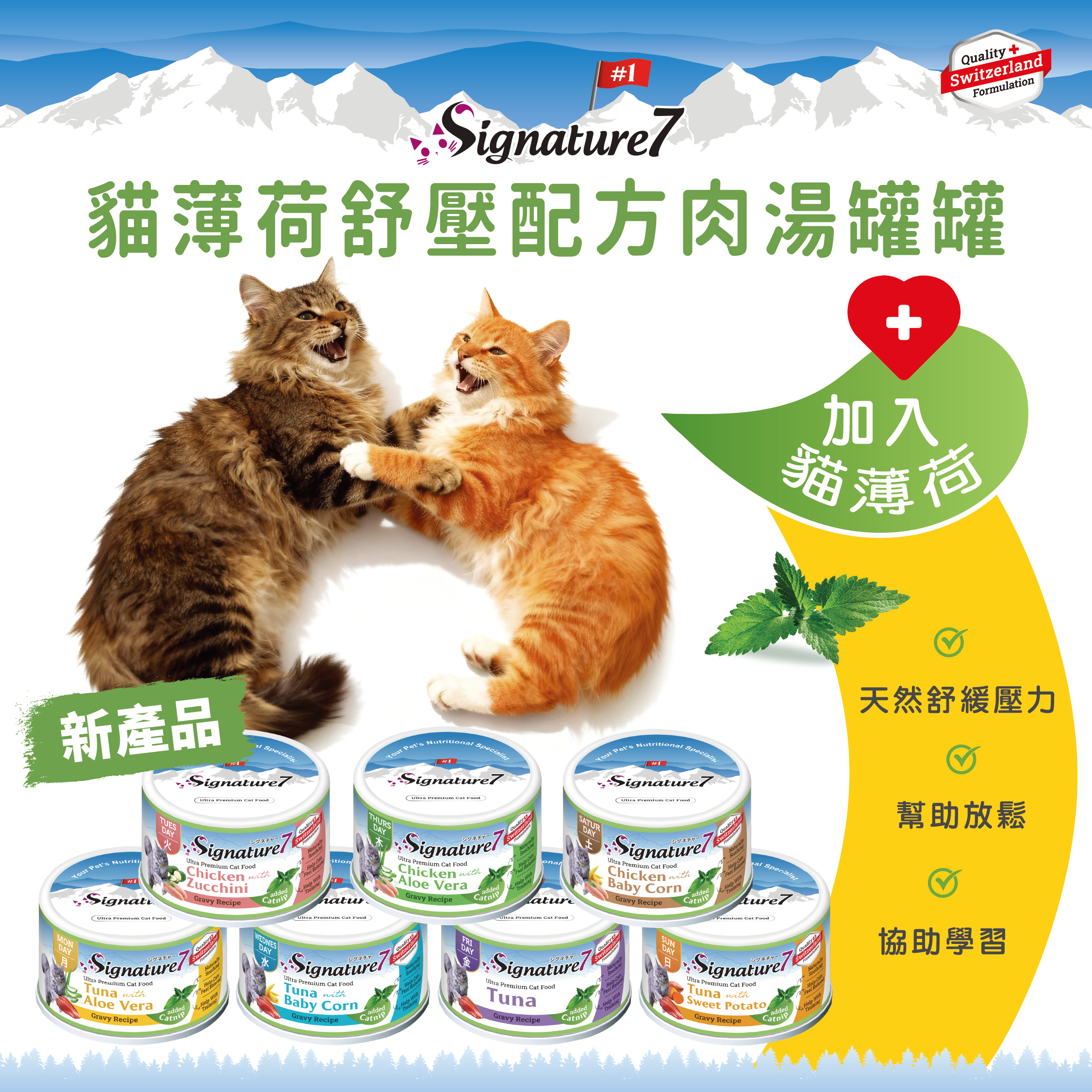 Signature7 貓咪罐罐一直為貓咪維護健康體態,今次新產品最適合平時喜歡加少量🌿貓薄荷畀貓咪嘅主人!究竟係咩?同大家介紹返 「Signature7🌿貓薄荷舒壓配方肉湯罐罐」,加入貓薄荷配方,一款可以幫助貓咪天然舒緩壓力嘅主食肉湯罐,首要食材為鮮肉🥩,含豐富蛋白質,有助鞏固健康體魄🐈全年齡貓適用👍🏻!