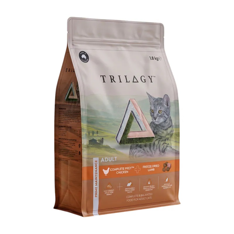 TRILOGY™ 乾糧的配方符合 AAFCO 貓糧營養成分為成貓維持制定的營養水平。