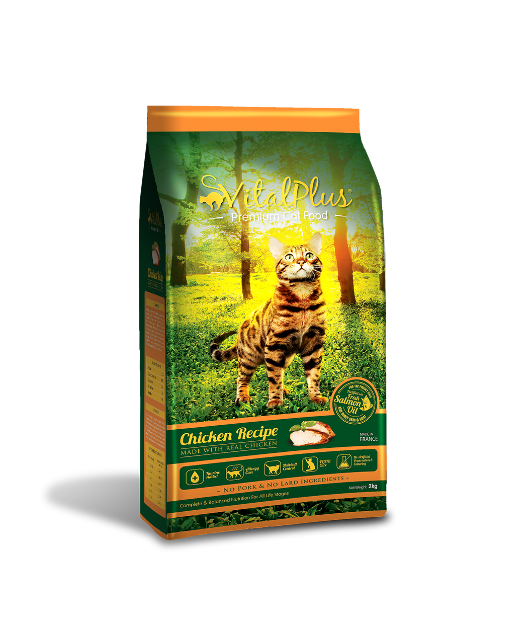 VitalPlus 雞肉配方貓糧是一款營養全面均衡的貓糧,適合所有品種的貓咪。它採用高生物價的優質雞肉和高能量精選蛋白質製成,富含貓咪健康生活所需的各種維生素和礦物質。我們的雞肉配方含有易於消化的碳水化合物,有助於消化,預防腸道疾病。配方中還添加了水解雞肉蛋白、魚蛋白和新鮮鮭魚油,以滿足挑剔貓咪的口味,並促進毛髮亮澤。此外,它還添加了多種營養補充劑,全面呵護貓咪的健康——維生素A促進肌肉、視力、皮膚和毛髮的健康生長以及神經系統發育;維生素E和硒增強免疫系統;牛磺酸促進心臟和眼睛健康。當然,您可以放心,我們的配方不含人工防腐劑和色素。