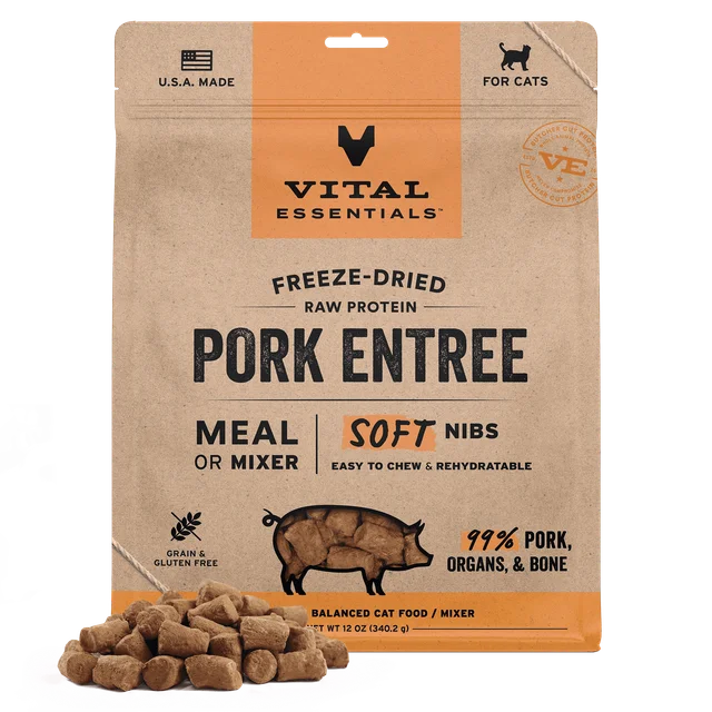用我們優質的冷凍乾燥生豬肉軟粒來犒勞您的愛貓吧!這款軟粒含有99%的生豬肉、內臟和骨頭。這些鮮嫩多汁的小塊既可以作為主食,也可以拌入貓糧中,為您的愛貓補充營養豐富的蛋白質。濃鬱的香氣能夠吸引挑食的貓咪,您還可以將它們碾碎並泡發,增加水分。每一口都富含易於消化的蛋白質,有助於腸道健康,幫助貓咪強健肌肉,讓它們玩得更盡興,並提供來自凍乾生蛋白的必需營養素,從而達到最佳的貓咪健康狀態。