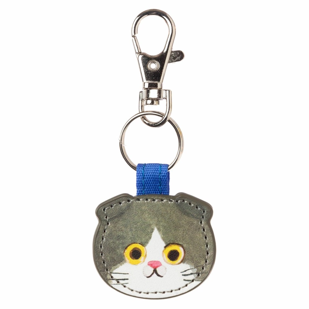 ECOUTE! 貓咪系列皮革鑰匙圈吊飾 灰貓
